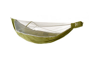 The re-imagined and feature-packed JungleNest Hammock exemplifies hammock camping luxury for a perfect night's sleep in the backcountry with its spacious interior and integrated bug net.